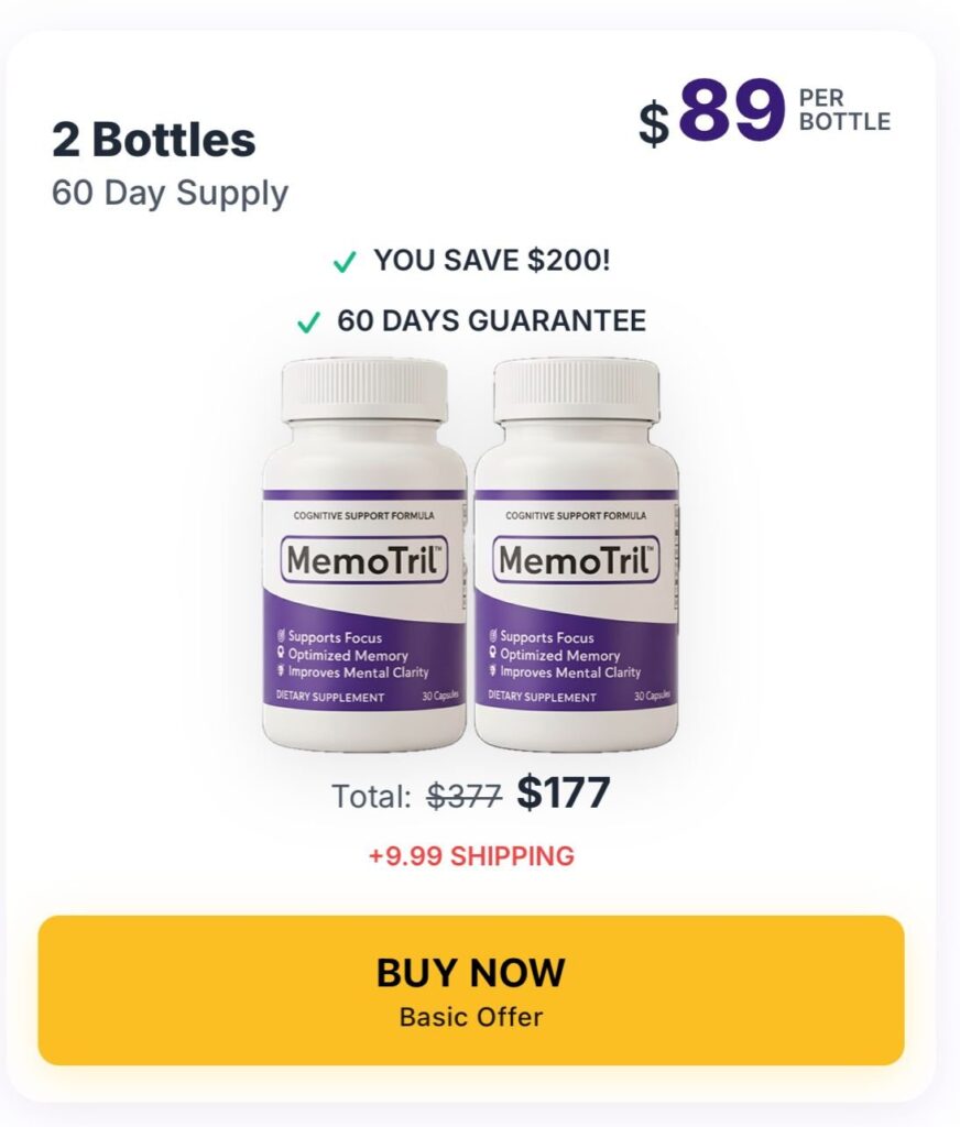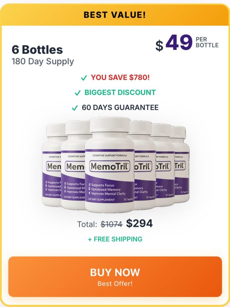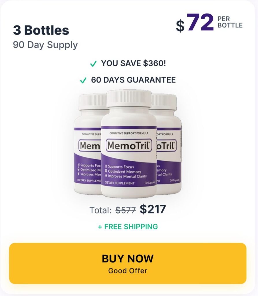If you’re serious about supporting brain health, improving memory, sharpening focus, and sustaining mental clarity, this is your chance to secure MemoTril at the best available price — with a 60-day money-back guarantee to try it completely risk-free.